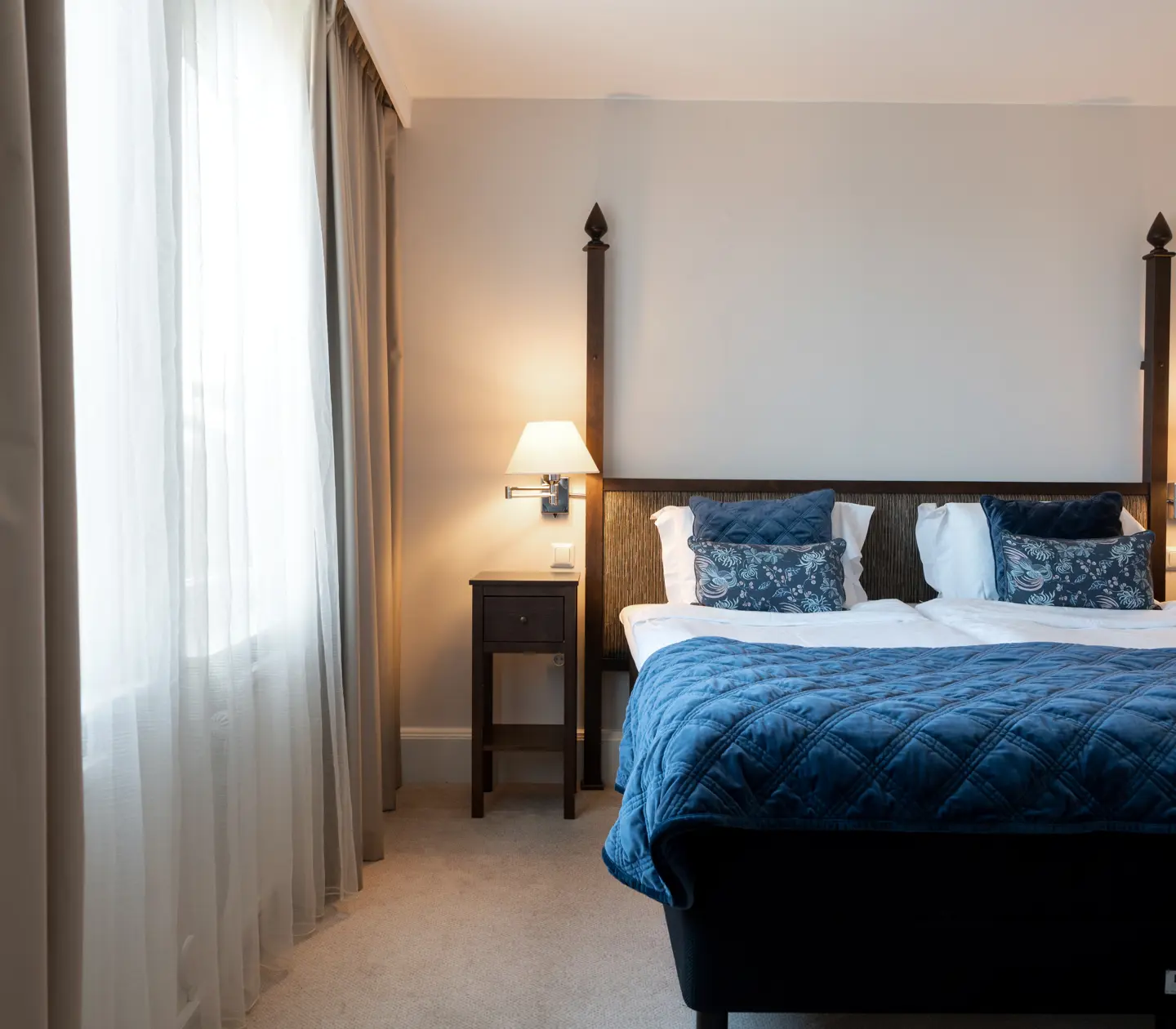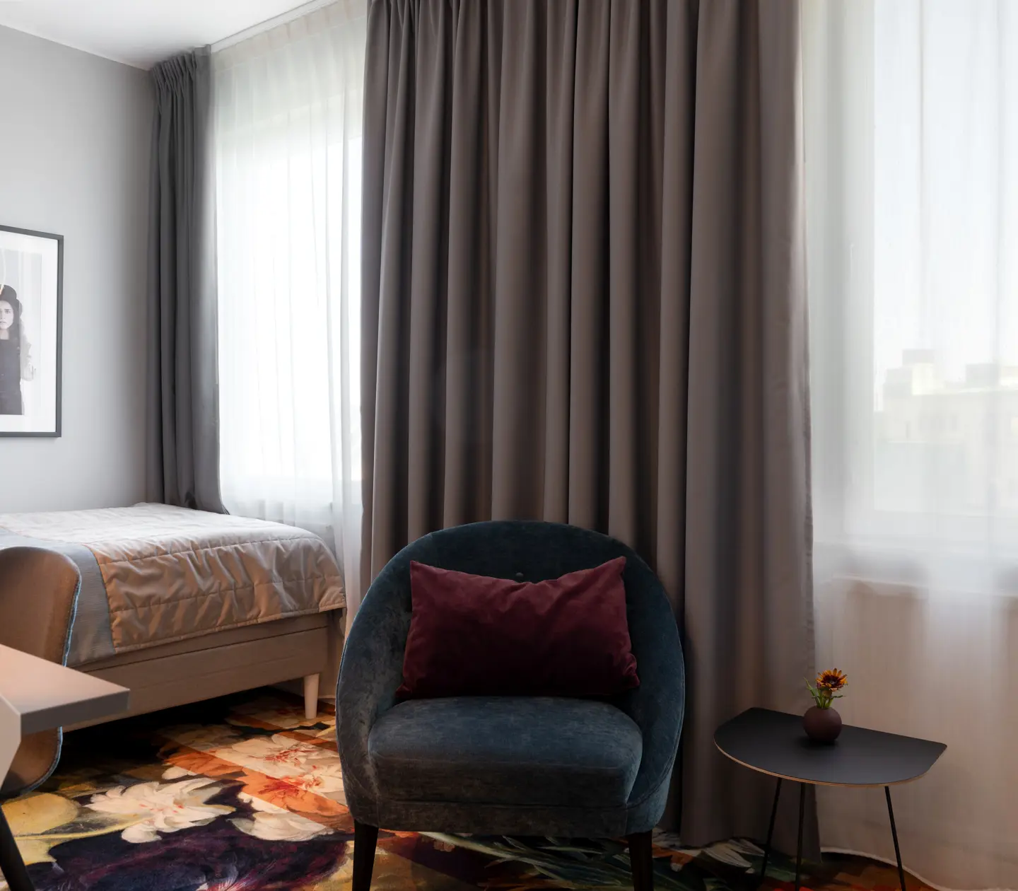 Premium Small are elegant double rooms with nice light and tasteful furnishings. Here you can relax, sleep in or work. There is a comfortable armchair and a bed with comfortable pillows. Bathroom with shower or bathtub.