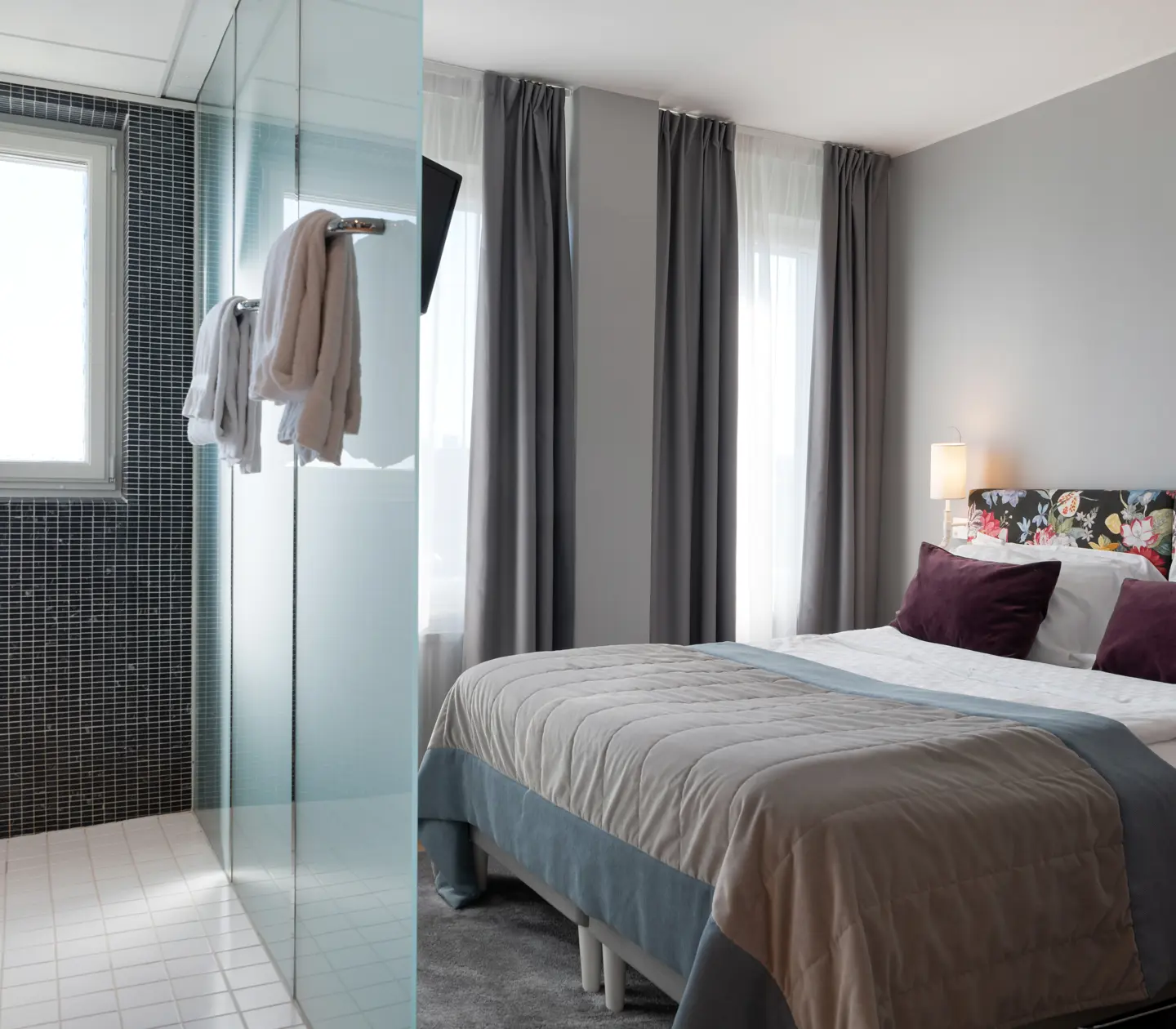 Premium Large has more of what we call flair or the goodness of life. Here, you can relax in a bathrobe and just be. The rooms are spacious and tastefully furnished with comfortable armchairs and a bed with comfy pillows. Bathroom with shower or bathtub.