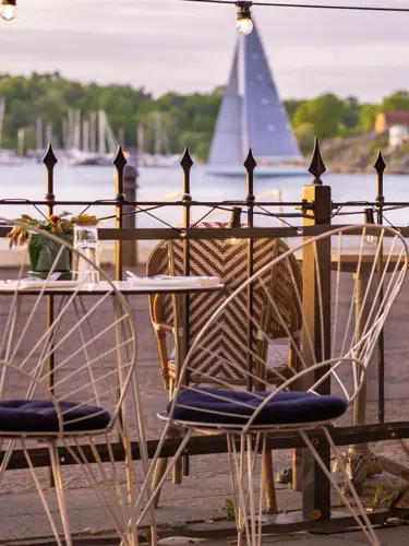 The boat No. 80 from Nybrokajen (a 10 minute walk from Stockholm Central Station) stops at Saltsjöqvarn. The ride takes about 15 minutes. SL tickets and the Stockholm Card are valid travel documents. To buy a single ticket, scan your payment card on board.